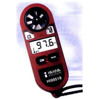 HI99518獨特的手持式袖珍風速/氣象測定儀,可以測量風速、溫度、風的寒度、相對濕度、熱量指數、露點溫度。大型液晶顯示屏更易讀取數據。