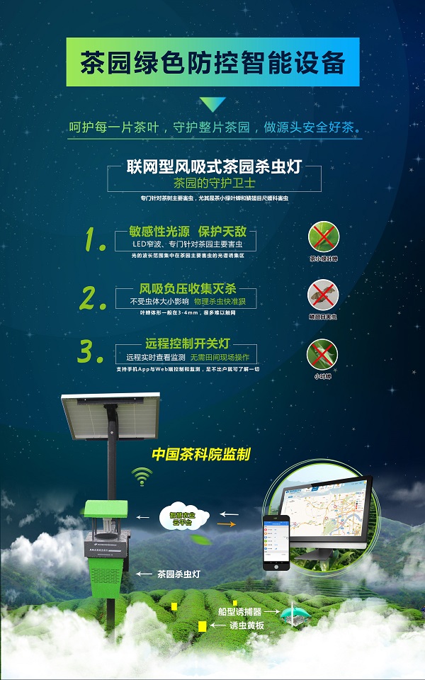 茶園綠色防控智能設備:呵護每一片茶葉,守護整片茶園,做源頭安全好茶。