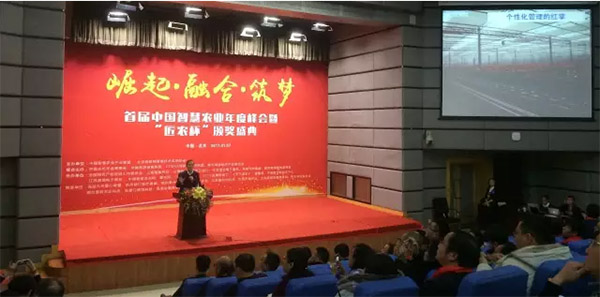 托普云農陳渝陽董事長(左一)上臺領取“2016農業信息化領軍人物”獎項