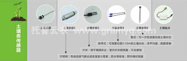 土壤熱通量傳感器,采用熱電堆測量溫度梯度,能廣泛用于測量土壤的能量平衡和土壤層的熱傳導率。土壤溫濕鹽三合一傳感器,能同時測量土壤溫度、濕度、水分三個參數。不銹鋼材質土壤水分傳感器,其防水等級高,能在野外隨時隨地開展測量任務。管式水分傳感器,不同深度土壤參數同時監測,監測深度最深達2米,可按需配置。