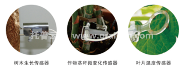除土壤傳感器外,托普云農還將傳感器研發方向衍生到植物本體、氣象等領域。在植物本體傳感器方面,先后研發出莖稈微變化、果實膨大、葉面溫度、葉面濕度等傳感器。